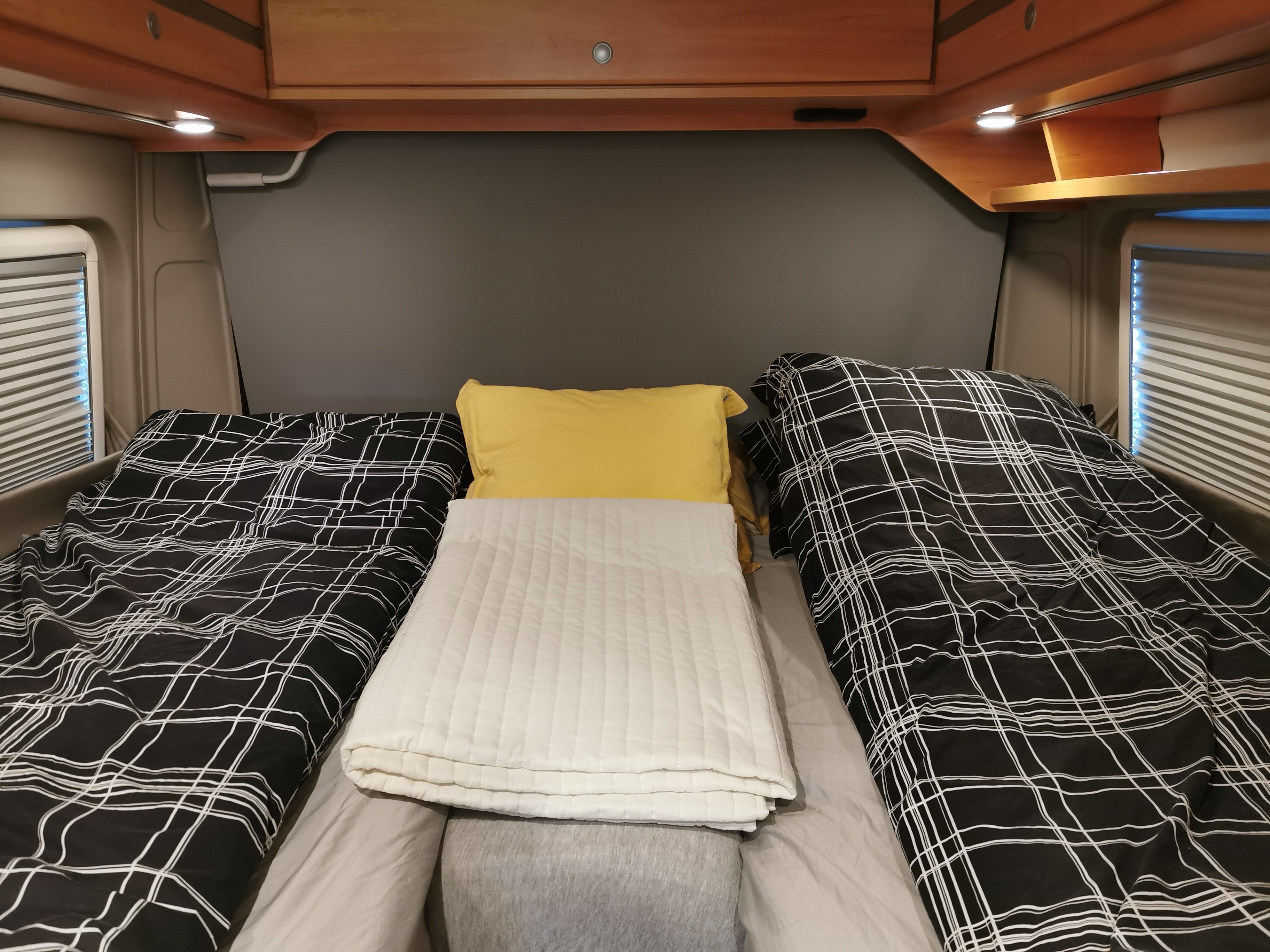 Den lille bobilen byr på to romslige soveplasser og madrasser av ypperste kvalitet. Det var beleilig under turene til Møre og Romsdal i juni, Trøndelag og “Heksemonumentet” i Vardø i oktober.
